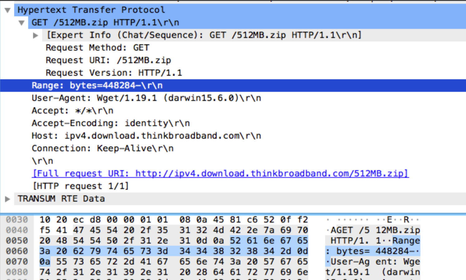 And the client HTTP get has the below HTTP range requesting a partial download/response form the server.
