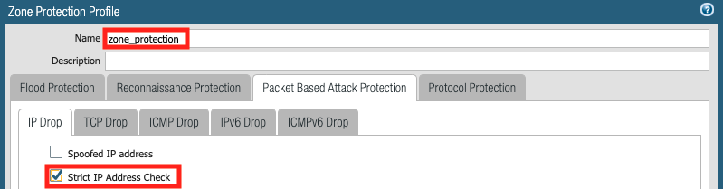 - Deaktivieren Sie "Strict IP Address Check" im Zonenschutzprofil oder