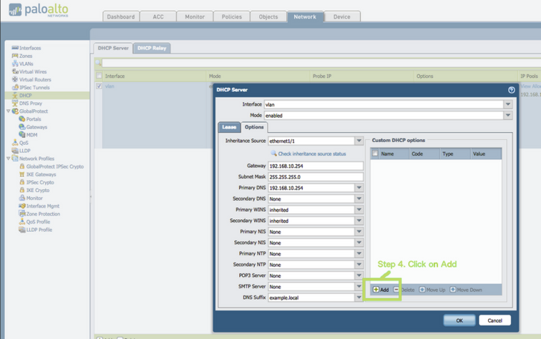 2. On your DHCP Server configuration go to Options > Custom DHCP Options. Click on Add.
