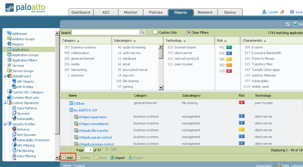- [オブジェクト] タブで、アプリケーションに移動し、「追加」を選択します。