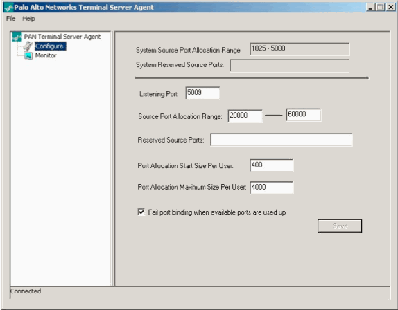 • Reserved Source Ports: Ports that need to be excepted from the source port range because another service running on the Terminal Server needs it to communicate with.
