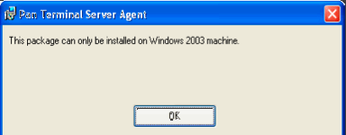 • The install will first check to see if the TS Agent is compatible with the operating system it is being installed on. If the operating system is not compatible, it will pop up with an error message similar to the following: