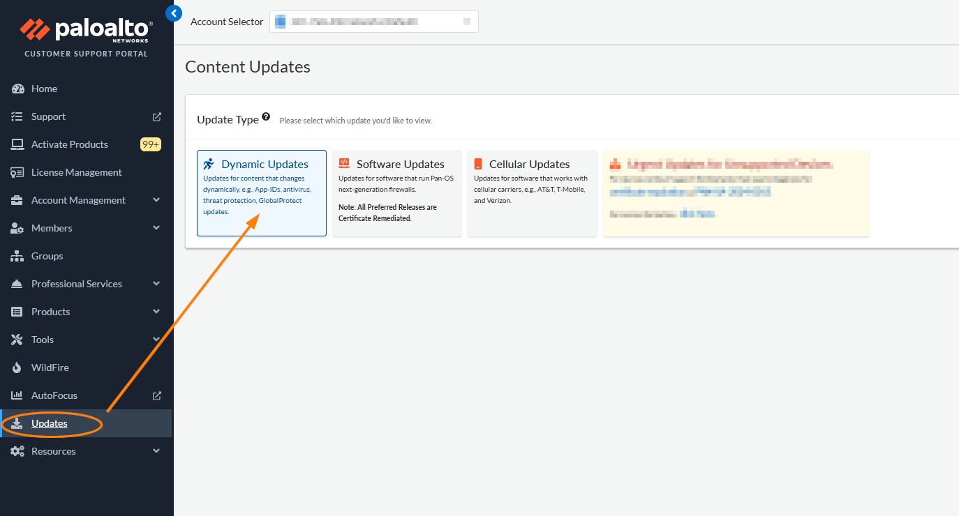 - Log into the Palo Alto Networks Customer Support Portal