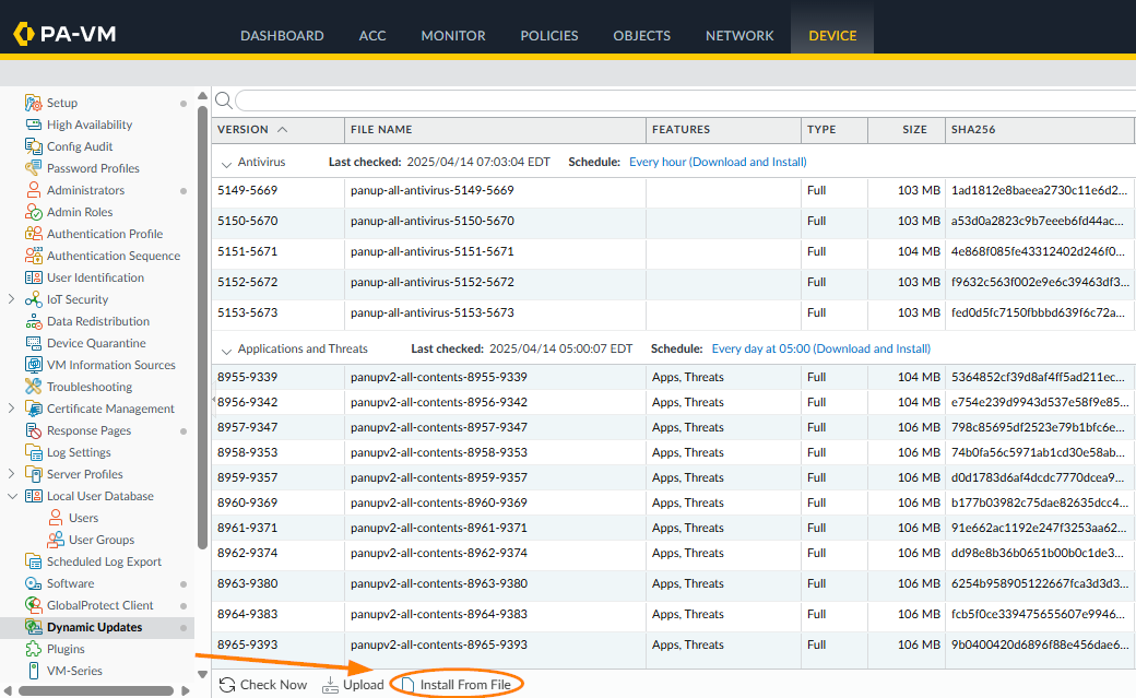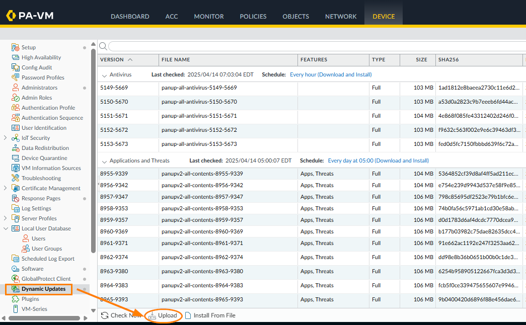 How to Manually Install Antivirus, Content, and WildFire Updates on the Firewall