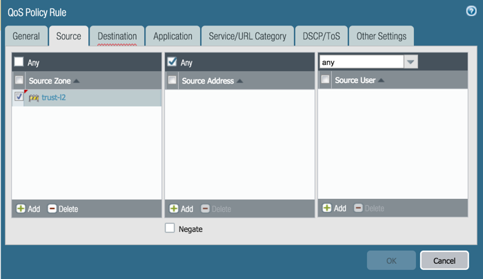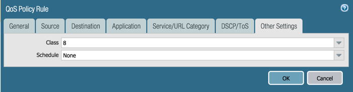 And/Or you can set a URL filtering category: QoS policy URL Category And finally set the policy to match the class in the QoS profile you want it to match: QoS policy Class