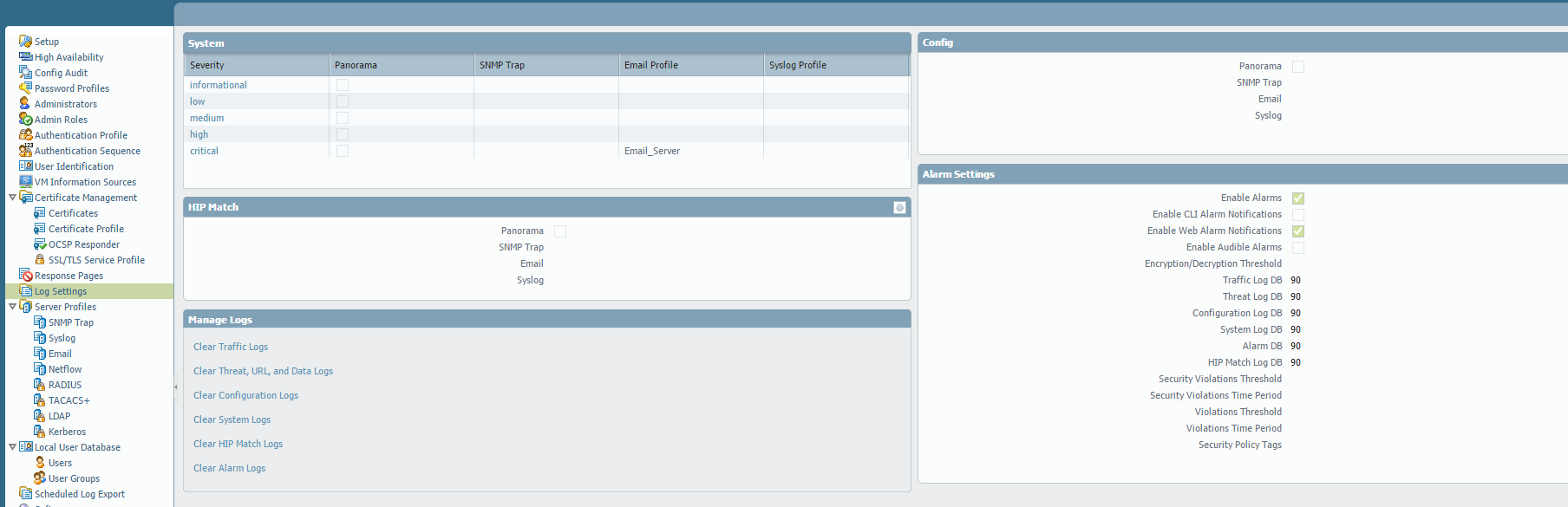 Ir a dispositivos > configuración de registro-sistema para configurar alertas de correo electrónico.
