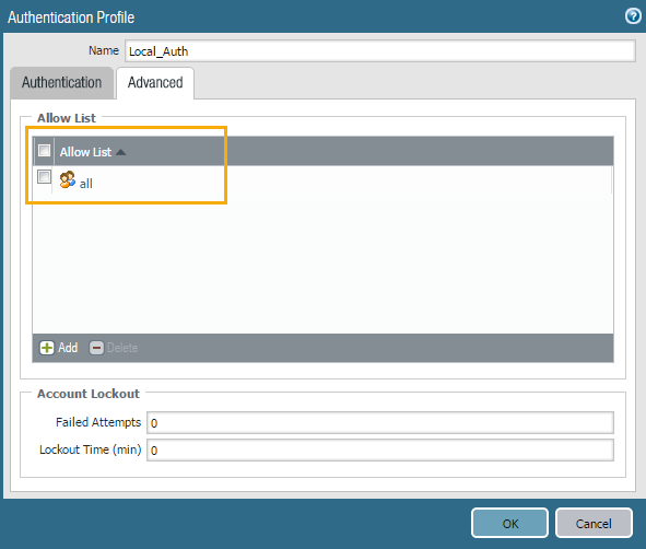 3. Create an authentication profile under Device > Authentication Profile > Add.