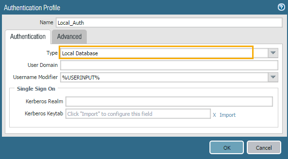 Type - Choose Local Database(You may choose ldap,radius etc depending on your requirement)