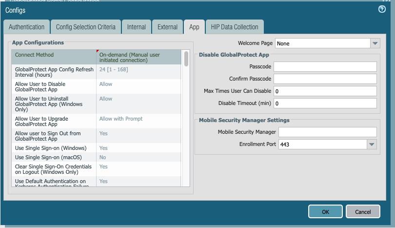 This document explains basic GlobalProtect configuration for on-demand with the following considerations: