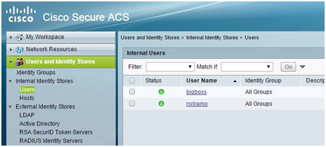 On the Cisco ACS server create a list of usernames that are defined on the Palo Alto Networks locally.