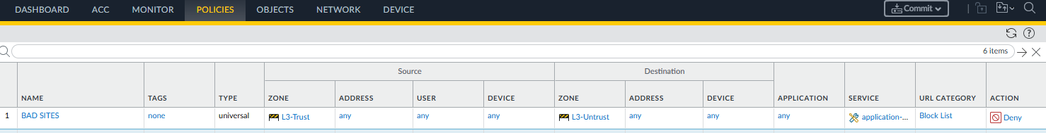 In order to block a list of URL's globally, create a custom URL category and add URL's to the category and then place that into a rule.