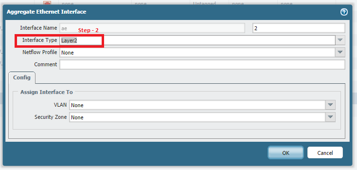 - Assign Ethernet interfaces to the aggregate ethernet interface. Select the desire Ethernet interface, and then select "Aggregate Ethernet" as "Interface Type." Go to Network > Interfaces > Ethernet.