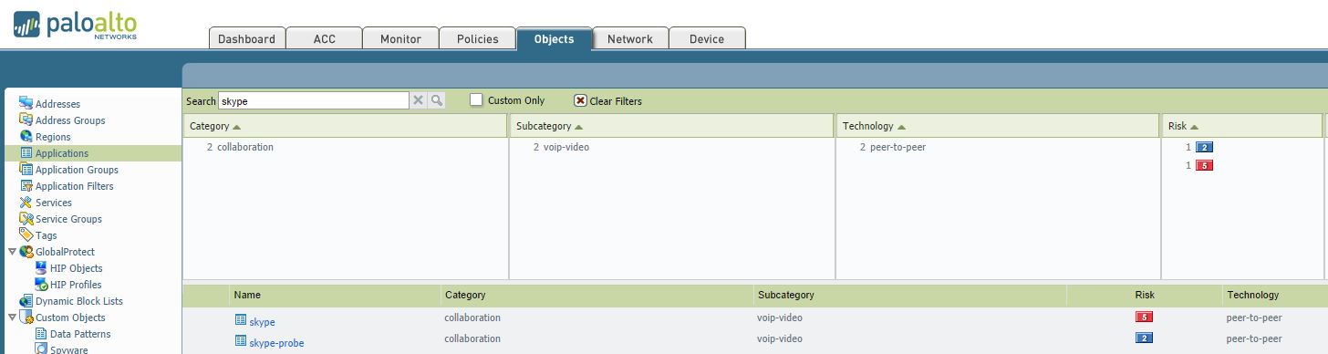 The following procedure blocks Skype traffic on the Palo Alto Networks firewall: