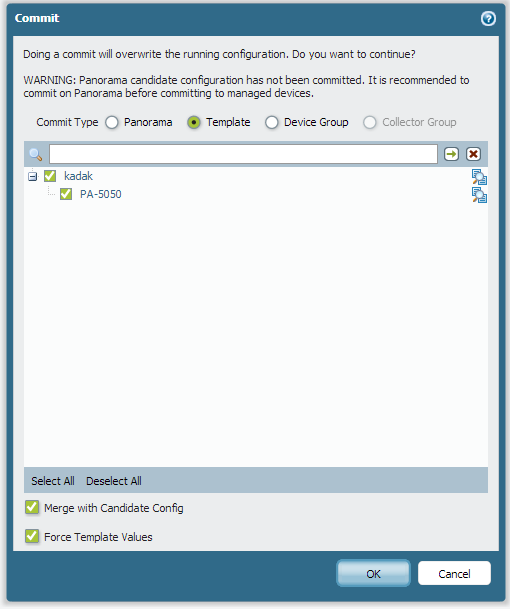 - [テンプレート値を強制する] オプションをオンにして、ファイアウォールの構成をパノラマからコミットします。