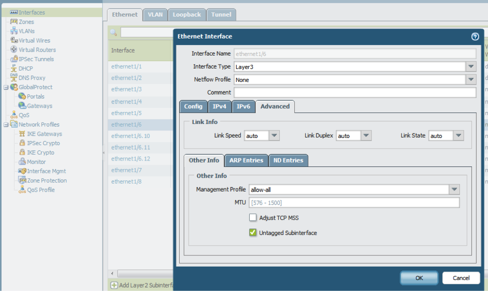 Subinterface Interface: Ethernet 1/6.10 is assigned a zone L3-Trust