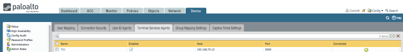 On the firewall, you can note that the Connection Security has been configured under (Device > User Identification > Connection Security). In this step, the firewall verifies the CA Certificate that signed the Terminal Service Agent's certificates.