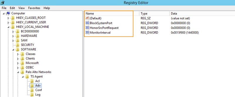 path: HKLM:\Software\Palo Alto Networks\TS Agent\Adv