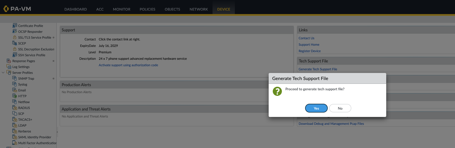 What exactly does 'Tech support file' contain? Is there all the configuration of the device? Is it safe to share it with the PAN support?