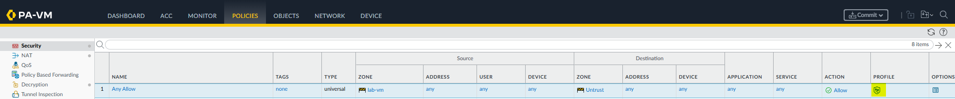 To enable your custom signature, go to Objects>Vulnerability Protection>Security Profile. Edit your profile