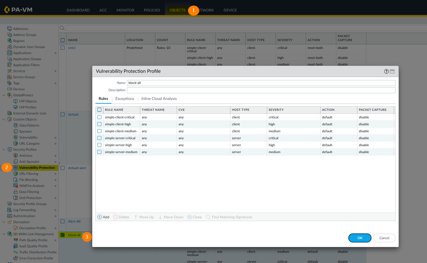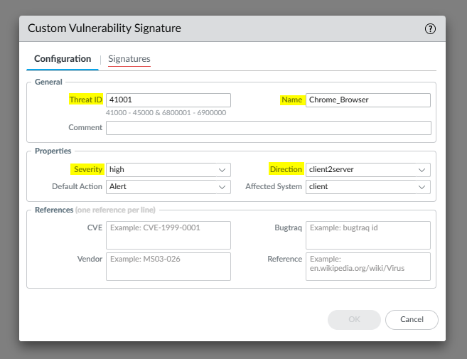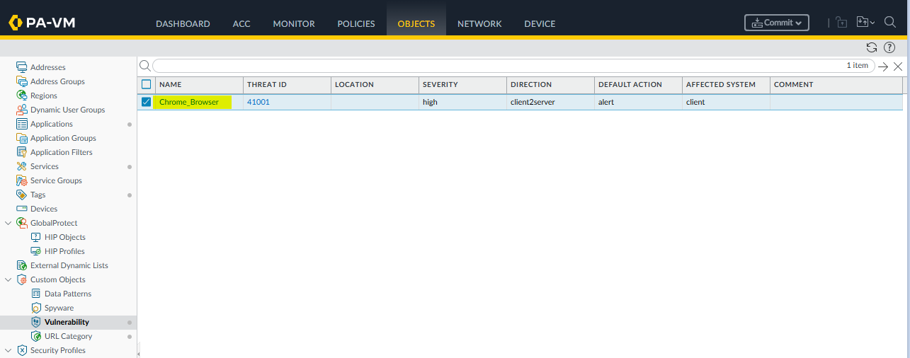 Note: Custom Signature will be enabled by default on all Vulnerability Protection profiles.