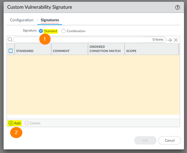 Using the Custom Vulnerability Signature page, you can define signatures for Vulnerability Protection profiles.
