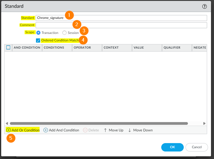 - Ordered Condition Match: Select if the order in which the signature conditions are defined is important.