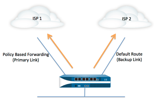 For ISP redundancy, Palo Alto Networks offers a solution through policy-based forwarding (PBF) using the following setup: