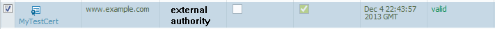 Click OK. The certificate now appears valid and the key checkbox is selected. (CA checkbox will remain empty as it is not valid for this example.)