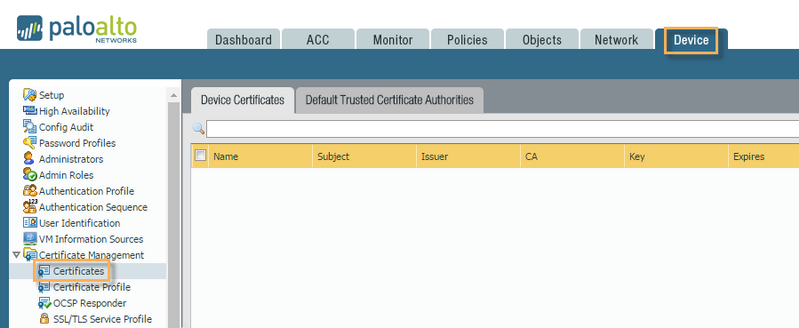 Go to Device > Certificate Management > Certificates.