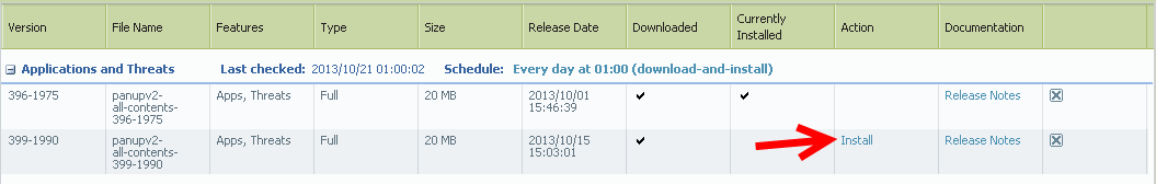 Nota: para actualizar sólo aplicaciones, descargue la última versión de aplicaciones sólo desde el sitio de soporte en https://support.paloaltonetworks.com.