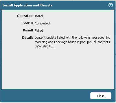 - El Firewall no será capaz de instalar una nueva versión de App & Threats o antivirus o retirarse a una versión anterior:
