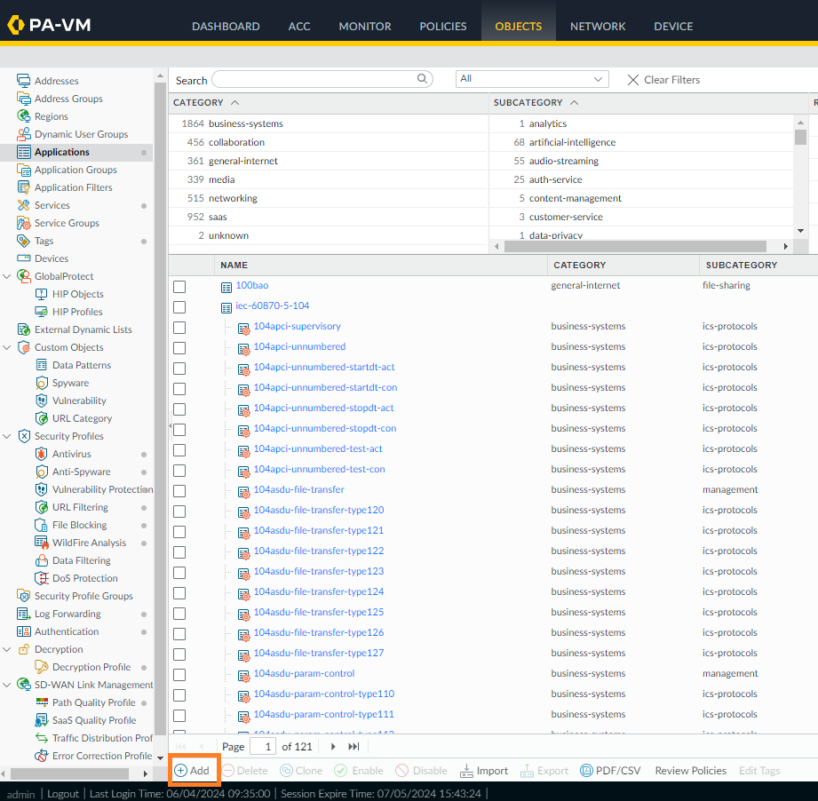 - Create a new Custom Application for the traffic in question. From the WebGUI, go to Objects > Applications, then click Add in the lower left.