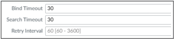• The Retry Interval specifies the interval after which the system will try to connect to the LDAP server after a previous failed attempt.
