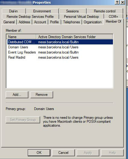如下面的示例所示, 在 AD 服务器 (172.30.30.15) 中, 请参阅用户 cr7 的权限: