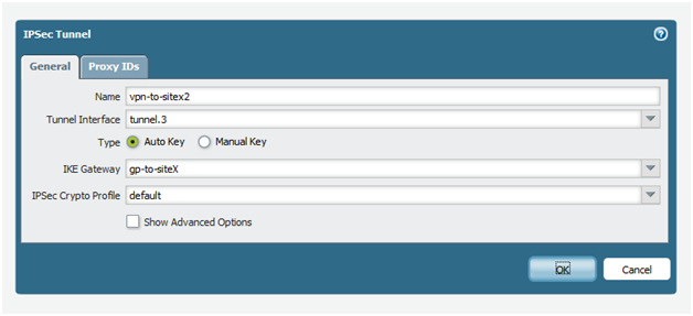 - IKE Gateway GW-to-siteX, o cualquier nombre de su elección.