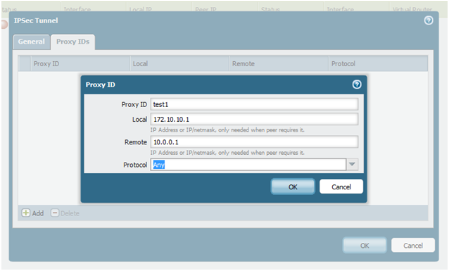 Nota: desde pan-os 5,0, la limitación de ID de proxy se ha incrementado a 250 excepto en el palo alto Networks PA-200, que tiene un límite de 25 IDS proxy. El rendimiento de los túneles con 250 proxy configurados es similar a los túneles con sólo uno configurado. Cada ID de proxy cuenta hacia el límite de plataforma para túneles VPN.