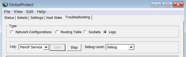 Enable logging on the client by going to Troubleshooting > Logs and select PanGP Service then click "Start".