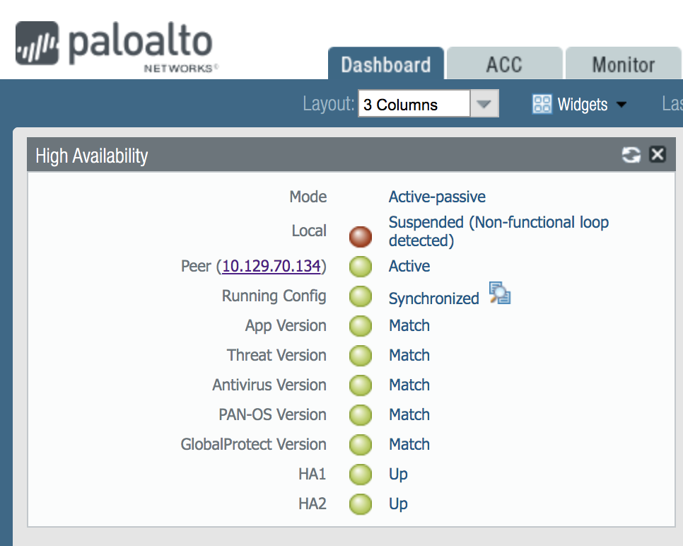 One of the firewalls in a High Availability pair (HA) moves into the "suspended" state due to Non-functional loop.