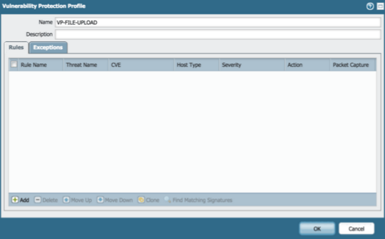 Go to Objects Tab > Custom Objects > Vulnerability, then click “Add”,Fill-in required fieldsas shown below: