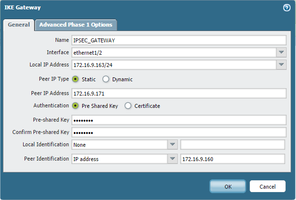 PA2 から開始の IPSec VPN トンネル (172.16.9.160)