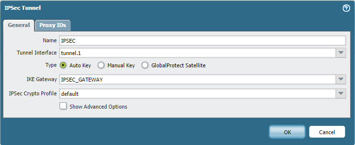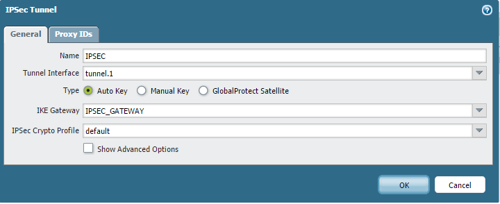 - IKE 暗号化およびIPSec 暗号化プロファイル には、既定値を使用します。