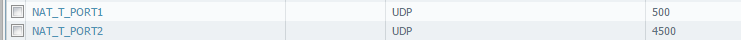 UDP ポート 500 および 4500 の双方向 NAT ルールは、以下の通り。
