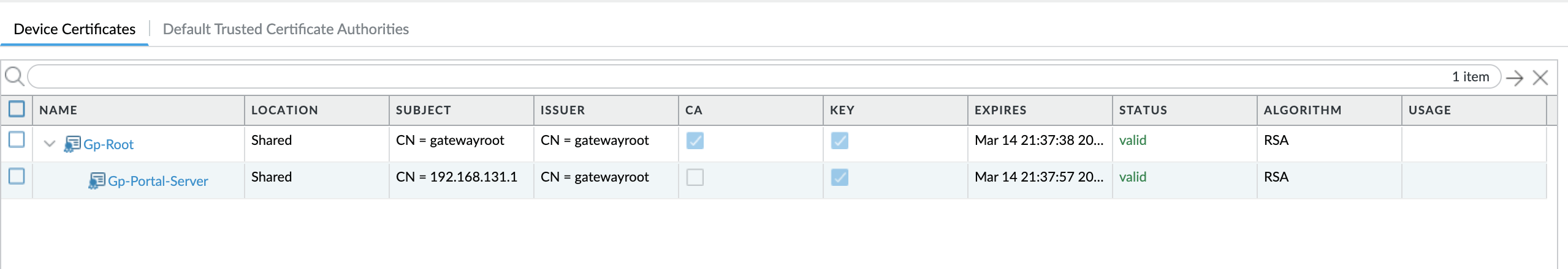 2.Check if the certificate is valid by going to Device > Certificate Management > Certificates > Device Certificates: