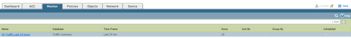 définir les rapports partagés "NY-Traffic-Last 24 hours" type trsum Aggregate-par [SRC DST App dstloc]