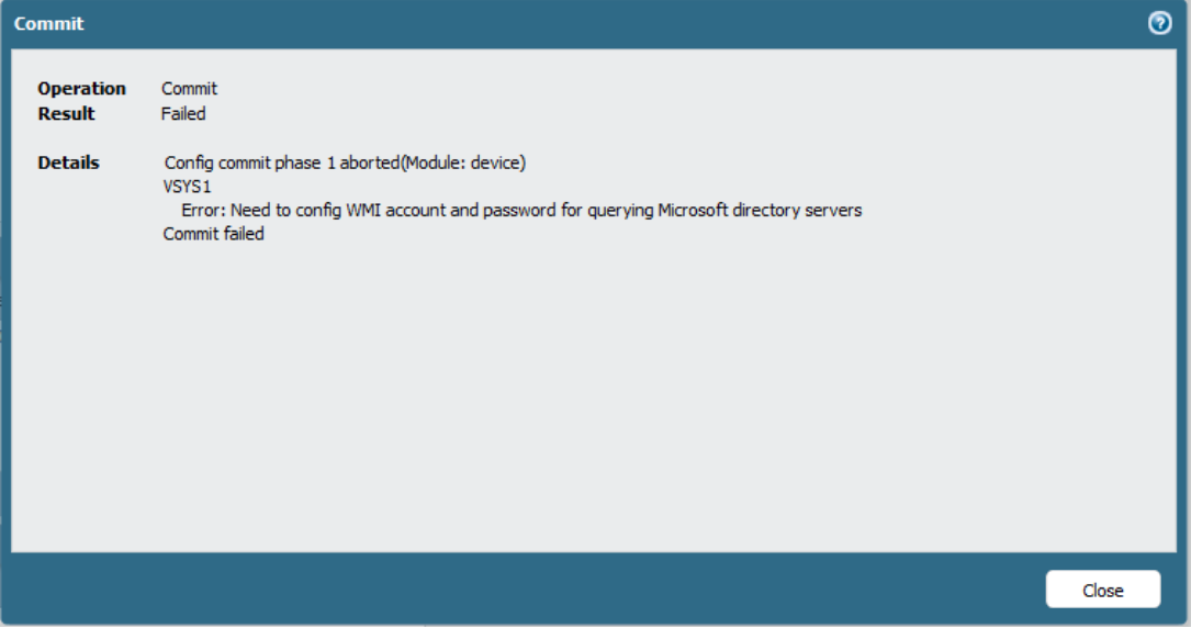 Commit Error: Need to Config WMI Account and Password for Querying Microsoft Directory Servers. Commit Failed
