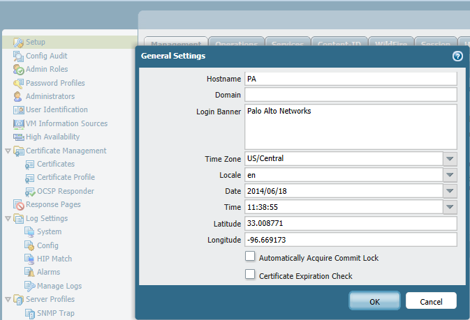 - Rollen Sie das Datum manuell auf der Palo Alto Networks Firewall (Gerät > Setup > Management > allgemeine Einstellungen). Dann generieren Sie die Status-Dump-Datei erneut.