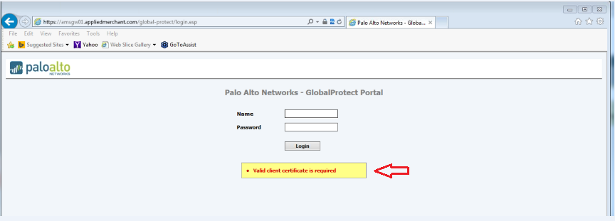 To resolve this issue, obtain a client certificate from the GlobalProtect Gateway and install it into Internet Explorer.