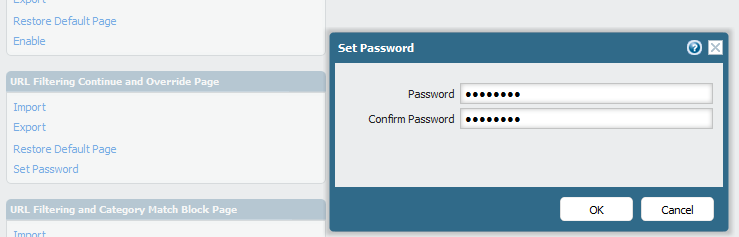 - Konfigurieren Sie das Passwort unter Gerät > Antwortseiten > URL-Filterung weiter und überschreiben Sie Seite > Passwort setzen.