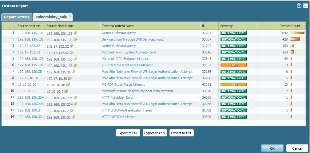 - La inclusión de Query Builder da la opción de incluir sólo la vulnerabilidad en los informes: