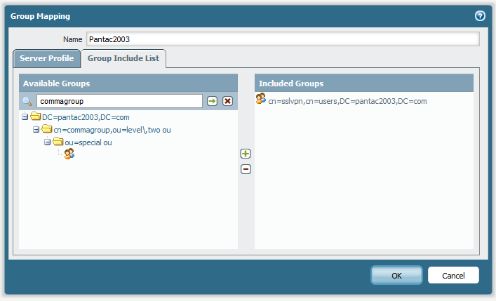 Mappages de groupes d'ID utilisateur ne fonctionnant pas lorsqu'ils sont situés dans une UO avec une virgule ou une esperluette